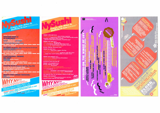 NY Sushi - Every Saturday / Music Factory - Yellow - Set of 4 Flyers