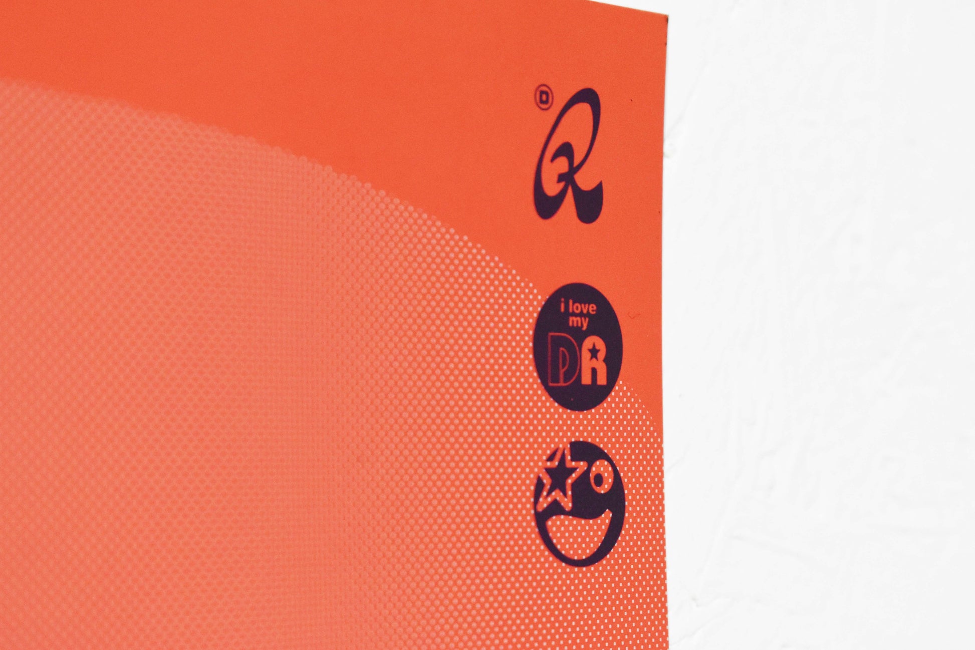 This 2-col Pantone Fluoro 805 vs Metallic Purple was originally printed in 1992 for 1993 as a limited run of 100 as a ‘Happy New Year’ communication to our (potential) clients and suppliers. There was an exact reprint of 200 around 2001 for the launch of The Peoples Bureau For Consumer Information website. Mining the archives we uncovered a (small) handful of the prints but it’s impossible to see or say which run they’re from.